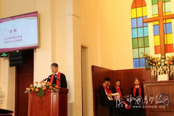 按立圣职典礼由郭云牧师主持并作宣告、询问和祈祷,谢旭广牧师引荐,蔡博生牧师授圣带,许洁平牧师送圣经,樊宏恩牧师训勉。新按立圣职人员代表朱振强牧师作答词、叶桃飞牧师祝福。