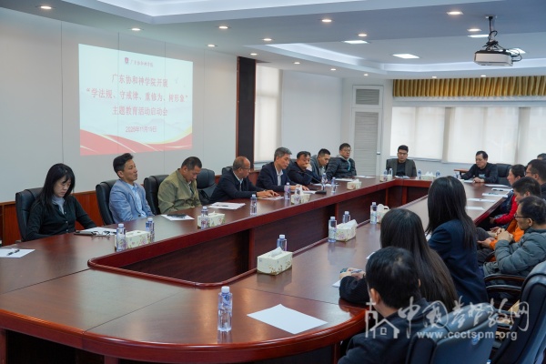 2025年11月19日上午,广东协和神学院组织传达学习党的二十届四中全会精神暨开展“学法规、守戒律、重修为、树形象”教育活动启动会。会议由省基督教协会会长兼广东协和神学院院长蔡博生牧师主持,省民族宗教委宗教工作二处有关负责同志到会指导,学院全体师生及协和堂教牧同工参加学习。
