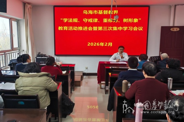2月5日,乌海市基督教两会召开“学法规、守戒律、重修为、树形象”教育活动推进会暨第三次集中学习会议,市基督教两会班子成员、场所负责人及教牧人员76人参加,市委统战部宗教团体服务中心同志到会指导。会议全面启动第二阶段“查摆问题”工作,明确对照“七不”要求和“九个是否”系统梳理突出问题,建立问题清单与整改台账,健全考核监督与惩戒退出机制。会议强调,要坚决杜绝管理流于形式、“一言堂”等现象,推动场所管理向制度化、规范化、法治化迈进。会议还围绕讲台规范、财务管理等议题展开交流,着力建设政治上靠得住、宗教上有造诣、品德上能服众、关键时起作用的教牧人员队伍。
