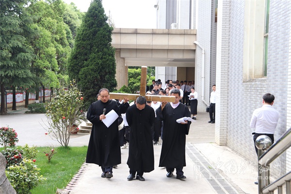 4月18日(受难日),全校师生及部分信徒近200人,在校园内展开“十架苦路十四站”灵修之旅。从“耶稣被判死刑”到“安葬坟墓”历程,参与者沿14处经文创置的站点默想祷告,每一站由师生诵读相关经文并颂唱诗歌。灵修之旅结束,校牧王坐谋牧师以《约翰福音》14章6节“我就是道路”进行主题分享,剖析基督徒当以“舍己、顺服、盼望”回应信仰之路的挑战。最后,学校组织师生观看影视《耶稣受难记》,影片中基督受难的场景令许多师生感动流泪,学生感慨道:“每一道伤痕都在诉说耶稣基督神圣牺牲的爱”。