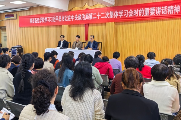 2025年10月15日下午,陕西圣经学校组织全校师生深入学习习近平总书记在中共中央政治局第二十二次集体学习会时的重要讲话精神,陕西圣经学校校长王红牧师、副校长陈鼎亮牧师出席,副校长贾海光牧师主持。