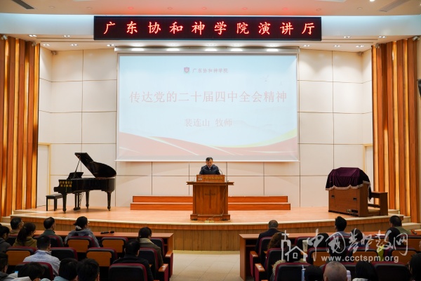 2025年11月19日上午,广东协和神学院组织传达学习党的二十届四中全会精神暨开展“学法规、守戒律、重修为、树形象”教育活动启动会。会议由省基督教协会会长兼广东协和神学院院长蔡博生牧师主持,省民族宗教委宗教工作二处有关负责同志到会指导,学院全体师生及协和堂教牧同工参加学习。