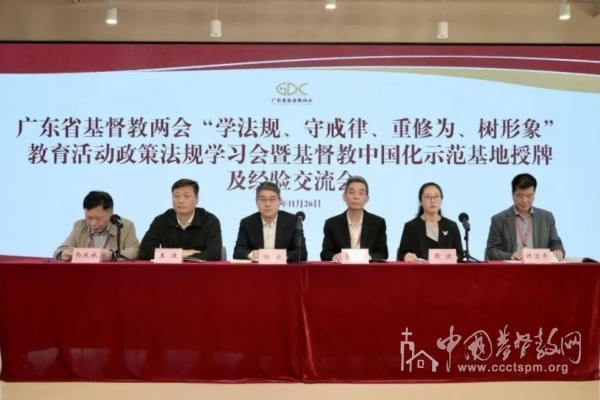 2025年11月26日,广东省基督教两会在深圳市举办“学法规、守戒律、重修为、树形象”教育活动政策法规学习会暨基督教中国化示范基地授牌及经验交流会。省民族宗教委、市民族宗教局宗教工作二处相关负责同志到会指导。省基督教三自爱国会主席郭云牧师、省基督教协会会长蔡博生牧师等班子成员,省基督教两会监事会监事长樊宏恩牧师,全省各地级市基督教两会主要负责人,荣获新一批基督教中国化示范基地场所负责人等参加会议。