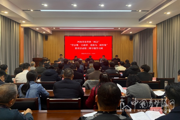 2026年2月3日,河南省基督教两会在郑州市开展“学法规、守戒律、重修为、树形象”教育活动第三期专题学习班。省基督教三自爱国运动委员会主席唐卫民牧师出席会议并讲话。省基督教协会会长胡俊杰牧师主持,省基督教两会班子成员、本届全体常委、市级基督教两会负责人及省重点教堂负责人参加会议。省民族宗教委宗教四处有关同志到会指导。