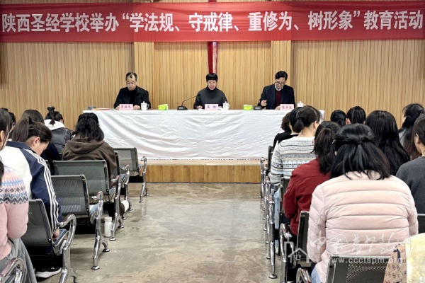 2026年3月11日下午,陕西圣经学校举行“学法规、守戒律、重修为、树形象”教育活动第四次学习,校长王红牧师、副校长贾海光牧师出席,副校长陈鼎亮牧师主持,全体师生参加。