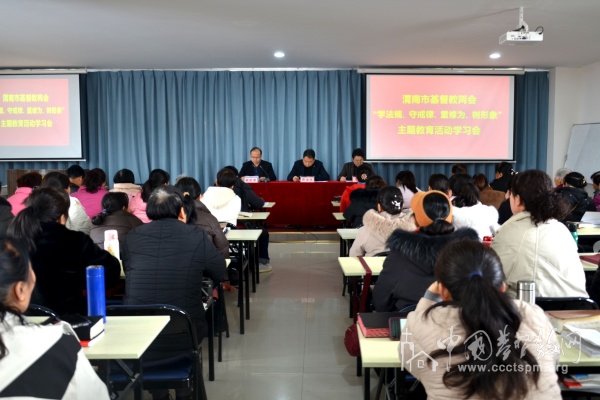 2026年3月18日,陕西省渭南市基督教两会举办“学法规、守戒律、重修为、树形象”教育活动学习会,市基督教两会主席、会长贾海亮牧师出席,驻会班子成员、办公室工作人员、各县(市、区)基层堂点部分负责人、教牧人员及信徒代表参加。