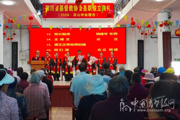 4月12日,四川省基督教两会分别在巴中市恩阳区、凉山州会理市举行2026年上半年圣职按立典礼,按立杨焱(彝族)、姚应文、王礼仙(女)、王正秀(女)四名传道员为牧师。