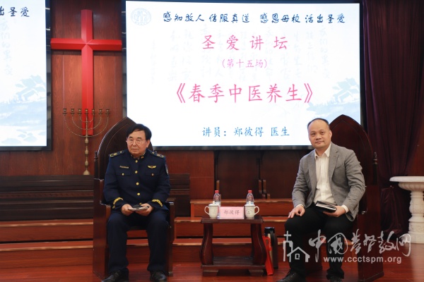 2026年4月10日下午,浙江神学院在礼堂举办第十五场“圣爱讲坛”,全院师生参加。本次讲坛由浙江神学院院长助理兼学工处主任郑荣达牧师主持,邀请北京同仁堂特聘专家、杭州市上城区万承志中医门诊部医生郑彼得担任主讲,题目为“春季中医养生”。
