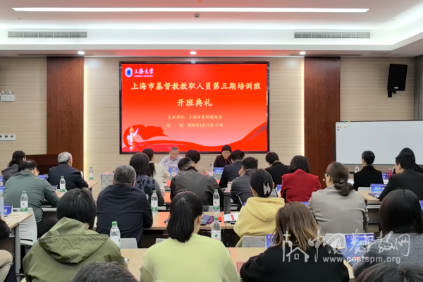 2026年4月13日至17日,由上海市民族和宗教事务局指导,市基督教两会主办的上海市基督教教牧人员第三期培训班在上海大学延长校区举办。来自全市各区基督教两会、华东神学院的50名专职教牧人员参加培训。开班式由市基督教三自爱国运动委员会主席徐玉兰牧师主持,市民族和宗教事务局基督教工作处负责同志出席并作动员讲话。