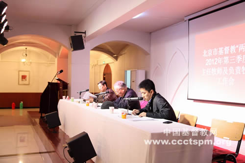 2012年11月22日上午9时,北京市基督教两会2012年第三季度主任牧师及负责牧师工作会在燕京神学院举行。