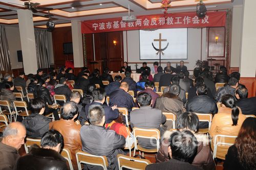 通过调研,市基督教两会了解了宁波各地受“东方闪电”危害的一些基本情况,更加明确了反击邪教的必要性与紧迫性,并于12月17日,在宁波基督教百年堂召开了由各县(市)区基督教两会负责同工及相关堂点负责人约100人参加的全市基督教反邪教工作会议。