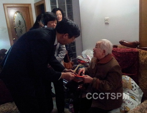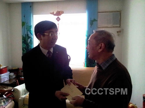 在2013年新春来临之际,福建省基督教三自爱国运动委员会主席岳清华博士等负责同工,分别于2013年2月3日及8日,前往福州等地看望福建教会老同工及其家属,同时委派副会长兼总干事张记有牧师前往邵武看望“感动中国十佳人物”朱邦月弟兄等,带去了省基督教两会对这些老人们的关心和慰问。