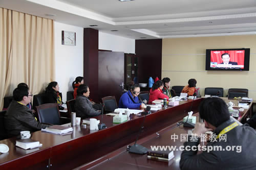 2013年3月5日上午,河南省郑州市基督教两会所有教牧同工在市基督教两会办公室,一同观看了“第十二届全国人民代表大会第一次会议”的开幕仪式,并认真听取了国务院总理温家宝所做的《政府工作报告》。
