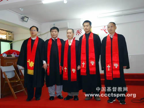 广东省基督教协会会长梁明牧师、省基督教三自爱国会副主席樊宏恩牧师、省基督教协会副总干事雷玉明牧师组成按立牧师团。