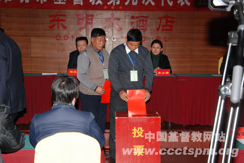 会议审议通过了陈光旭牧师代表基督教三自爱国运动委员会第八届、协会第五届常务委员会所作的工作报告,石乐新牧师作了潍坊市基督教两会《章程》修改说明。以无记名投票的方式选举产生了潍坊市基督教两会新一届领导班子。陈光旭牧师当选为市基督教两会主任、会长,石乐新牧师、王复兴牧师当选为副主任、副会长,石乐新牧师兼秘书长、总干事。
