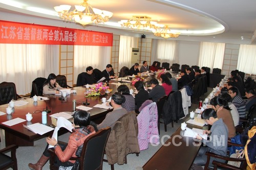 1月15日下午,本届第三次会务会议召开,江苏省基督教三自爱国运动委员会主席张克运牧师主持会议。江苏省基督教三自爱国运动委员会副主席兼秘书长史历同工宣读《江苏省基督教两会2013年工作总结(草案)》,对上一年度省基督教两会的工作情况进行总结梳理,并广泛听取与会同工的意见和建议。