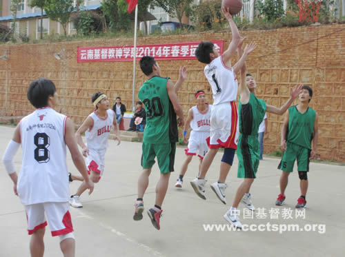 2014年4月1日上午,云南基督教神学院春季运动会在云南省昆明市呈贡新区恩光堂操场举行开幕式。开幕式上,云南基督教神学院教务长张再亮牧师为大家做了精彩致辞,表示作为主的精兵,灵性的操练与身体的操练同样重要。之后,由一年级的小学林同学和王志刚同学分别作为裁判代表和运动员代表宣誓,要在“友谊第一,比赛第二”的指导精神下将比赛进行到底。