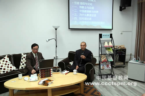 金陵协和神学院博雅读书会第十五期和圣经研究系列讲座第四讲于2014年4月2日至3日,在图书馆博雅斋联袂举行。担任本次主讲的嘉宾是中国社科院世界宗教研究所副研究员石衡潭博士。他分别以“透过电影看人生:从《一九四二》到《悲惨世界》”和“《圣经》《论语》对读对当代中国基督教的意义”为题,重点导读其著作——《光影中的信望爱》和《论语遇上圣经》。两次活动分别由我院刘美纯副教授和严锡禹副教授主持。