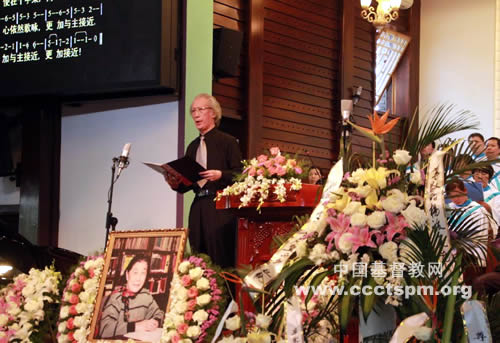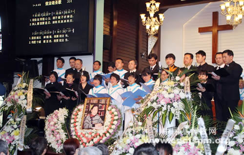 4月10日上午,杭州基督教思澄堂主堂显得的格外的庄严肃穆,面带慈容的杨旅复老师遗像安放在由鲜花装扮的“心型”中间,表达了对杨老师的深深敬意和怀念。上午9时不到,思澄堂二楼主堂已经坐满了前来参加追思礼拜的人们。9:30分,追思礼拜正式开始,浙江省基督教协会会长顾约瑟牧师主礼,浙江省基督教咨询委员会主任倪光道牧师为礼拜献上祷告,原杭州市基督教联合圣歌团成员组成的诗班献唱杨旅复老师所作的三首歌曲,浙江省基督教三自爱国运动委员会主席潘兴旺牧师行述,杭州市基督教协会会长张效法牧师以“醒来仍要赞美”为题证道。张效法牧师证道中动情地回忆说:当年正是杨老师的谆谆教导、循循善诱使他开始对圣乐产生了兴趣,为日后的服侍铺筑基础。张牧师根据(彼前3:14节;诗119:164节)的经文,认为在杨老师身上至少有四种美好品格值得我们学习和效法。首先就是她性情温柔无可指责;不论是杨老师的学生、同事,甚至她自己的家人都没有见过她发脾气,她总是以慈母恩师的形象、温柔的笑容关心关怀身边的每一个人,给大家带来帮助和安慰。其次是她酷爱圣乐终身服侍,杨老师很小的时候就在教会中弹琴,与音乐结下不解之缘,她一生在音乐上不断学习,造诣深厚,甚至在她九十岁高龄的时候依然坚持唱诗弹琴。在她病重期间,当音乐响起的时候,她的手会慢慢随着音乐的节拍轻轻地在被子上拍打,从内心涌出对上帝的感恩和赞美,从而忘记了痛苦。她殷勤竭力多作主工,杨老师视音乐为她的生命,她一生都为圣乐事工而活着,似乎从来都不知疲倦,她的先生蔡文浩牧师都称她是“工作狂”,她的的确确为了圣乐事工鞠躬尽瘁、完全献上。她全然圣洁安然见主,她一生忠心事主,无怨无悔,为神作了佳美的见证,虽然杨老师已经离我们而去,但是他的爱与见证必会激励我们,肩负使命,荣神益人,相信我们将来定会再相见。圣经说:“在主里面而死的人有福了!他们息率自己的劳苦,做工的果效也随着他们。”