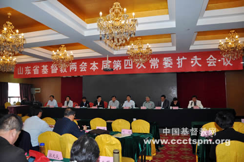 4月15日上午,山东省基督教两会本届第四次常委扩大会议召开,高明牧师做工作报告。会议总结了去年神学主日奉献情况,通过了山东省基督教活动场所财务管理意见,提出了关于加强山东省基督教活动场所财务管理的要求,报告了省基督教两会关于出版事工、养老事工等情况。