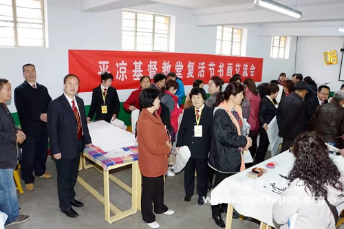2014年4月20日,甘肃省平凉市基督教堂隆重举办平凉基督教堂复活节书画交流会。活动开幕式由平凉市崆峒区基督教协会会长李建国牧师做感恩祈祷,并分享了有关耶稣受难、复活的信息。