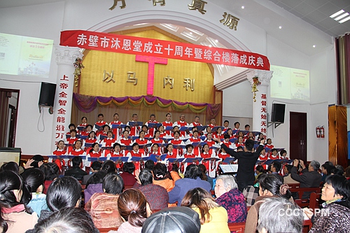 2014年11月26日,湖北省赤壁市基督教沐恩堂建成十周年暨培训综合楼落成庆典在沐恩堂举行,来自全省各教会教牧同工及沐恩堂信徒约1500人参加这一庆典。