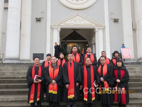 江西省基督教协会于2014年12月28日,在江西省基督教恩典堂举行了圣职按立礼拜。江西省基督教两会新班子自2014年换届以来,非常重视全省各地上报圣职按立申请的工作,省基督教圣职人员按立典礼按照基督教全国两会颁布的相关要求与认定办法、以及按立申报程序进行。申请同工需要所在地基督教堂点及县市基督教两会推荐考核同意后,上报省基督教两会圣职部。圣职部根据各地上报申请同工的材料进行综合评估,对合乎要求的申请同工反馈到所在侍奉堂点进行两周的公示,再经圣职部分别于2014年10月至12月深入到各基层教会进行考核,考核达到考评标准方可给予按立。