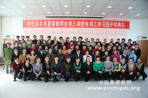 呼伦贝尔市基督教两会学习班于2007年3月份成立,为有计划、有步骤、有系统培训的四年制学习班。该学习班的学员对象为全市各基督教各活动场所负责人、传道员、管委会成员、义工、信徒骨干及有追求学习意愿的弟兄姊妹。