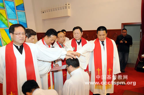 浙江省基督教协会成立了以顾约瑟牧师为主礼,潘兴旺牧师、单渭祥牧师、高建伟牧师、陈孝浪牧师、陈志华牧师为襄礼的6人按立小组。典礼由单渭祥、高建伟两位牧师分别为按立牧职和教职同工作引荐,潘兴旺牧师证道,陈志华牧师、陈孝浪牧师作开始与结束祷告。按立小组成员为15位按立同工举行神圣的按手礼并颁发证书、披戴圣带、赠送圣经与教会规章,合影纪念。