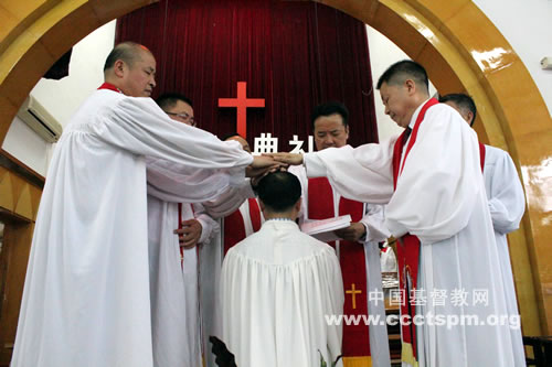 感谢主的恩典,浙江省基督教协会于2015年5月8日,在温州市龙港主恩堂举行隆重圣职按立典礼。圣职按立由浙江省基督教协会会长顾约瑟牧师主礼,襄理由浙江省基督教三自爱国运动委员会秘书长陈孝浪牧师及温州市基督教两会欧阳后增牧师、陈同明牧师和县基督教两会郑宗标牧师共5人组成。