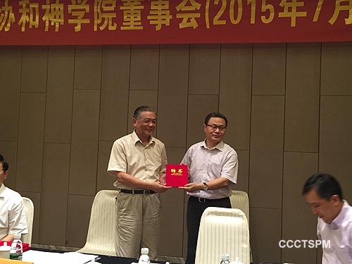 会议认真讨论了徐晓鸿牧师代表上届董事会提出的关于《金陵协和神学院董事会章程》的修改草案,畅所欲言,提出了不少有益的建议。接着,会议讨论并通过了新一届院领导班子成员聘任名单(见附件)。傅长老代表董事会给新上任院领导班子颁发聘书。