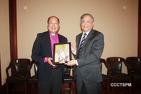2015年11月5日上午,中国基督教三自爱国运动委员会主席傅先伟长老在本会接待了香港圣公会教省主教长邝保罗大主教一行16人。宾主双方进行了座谈。