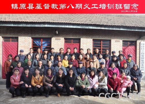 2012年11月9日至18日,在甘肃省镇原县城关基督教堂举办了为期10天的镇原县基督教第八期义工培训班,参加培训的正式学员58 名,旁听生30名。培训班开设的课程,均由省基督教两会专门派老师授课,甘肃省基督教两会金玉丰牧师和王殿选同工分别讲授《教牧书信》、《旧约历史书》,还有来自县农牧局、农广校、公安局、法律援助中心的有关领导、专家进行专题讲座。