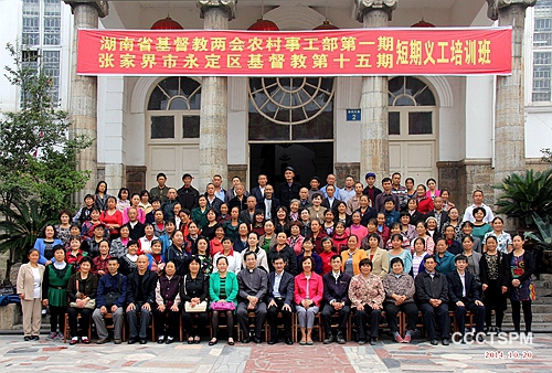 湖南省基督教两会农村事工部于2014年10月20日至31日,在张家界市基督教福音堂举办了第一期暨永定区基督教第十五期短期义工培训班。湖南省基督教协会会长陈郅牧师主持了开班典礼,联合圣经公会柯伟生主任一行为培训班赠送了《圣经•启导本》《奔向标杆》。