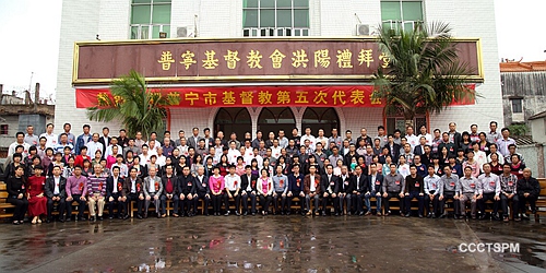 2014年11月12日上午,广东省揭阳普宁市基督教两会在基督教洪阳堂召开第五次代表会议,共有151名代表参加本次会议。揭阳市基督教两会主席、会长许洁平牧师,副主席,副会长黄晓婷牧师,各县(市、区)基督教两会负责人,普宁市党政有关部门领导出席了会议,许洁平牧师、林蟠凯处长、普宁市民族宗教局詹汉龙局长分别发言祝贺。