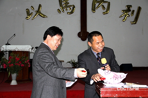 赵世传主席向新一届学生会主席王兴华同学在财务和公章等方面进行交接,王兴华同学代表新一届学生会成员讲话:认真服侍,只为得神的喜悦,在《荣耀归神》的歌声中,中南神学院学生会新、旧交接工作圆满结束。