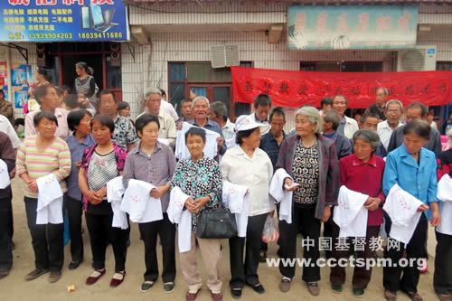 河南省新安县西沃乡基督教会为困难群众捐赠T恤衫
